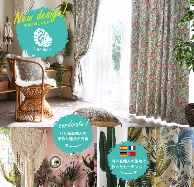 こちらの厚地カーテンは色彩も鮮やかで、海外輸入品ならではのデザインが魅力的な商品です。