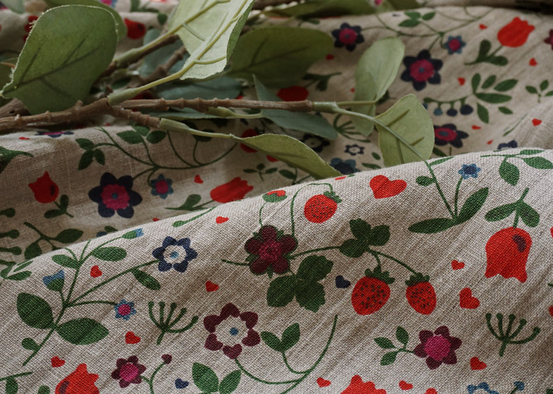 レトロで可愛らしいイチゴや小花柄のカーテンです。