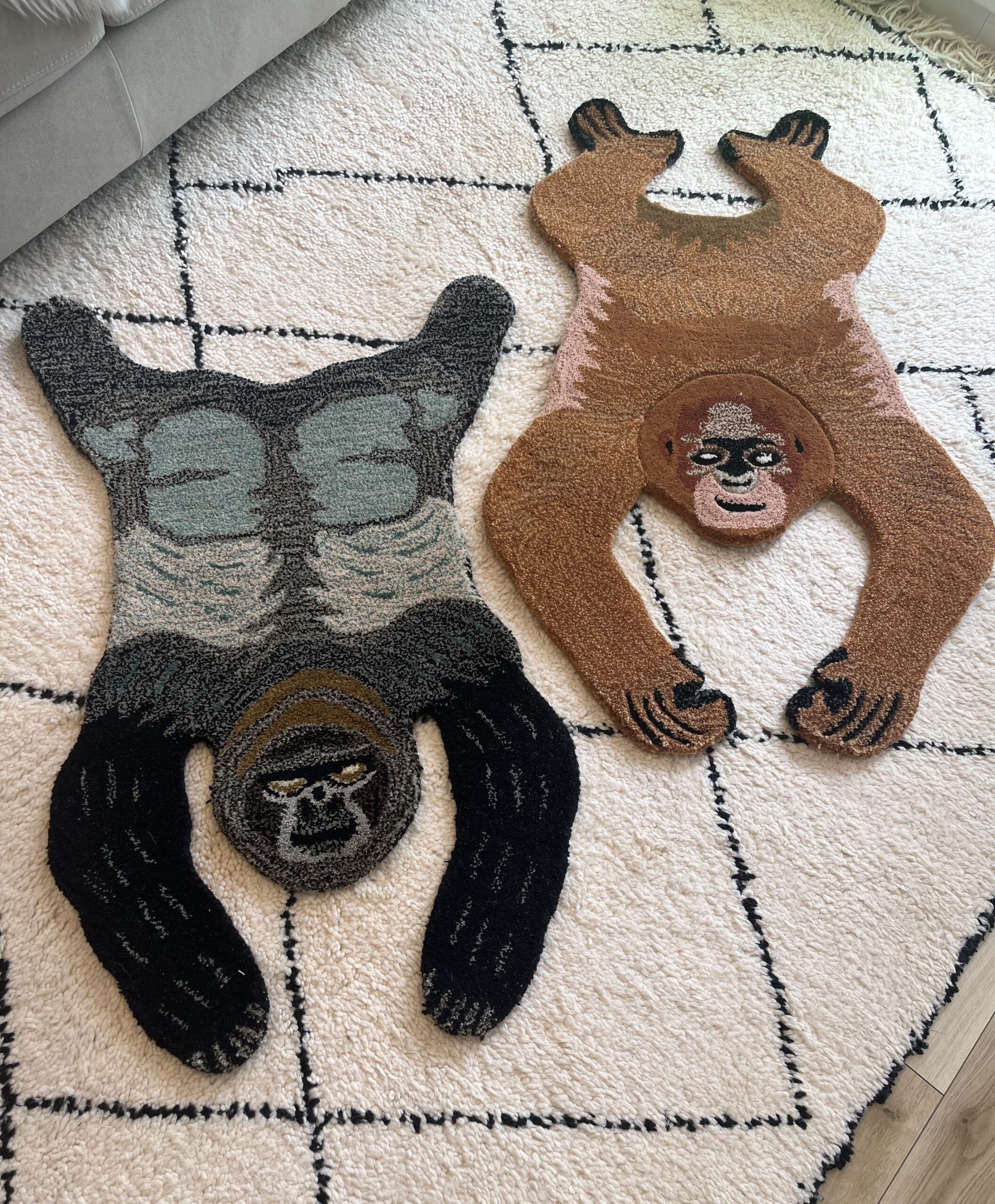 インドから直輸入しました、インパクト大◎のアニマルラグ達でございます🦍🦒🐵