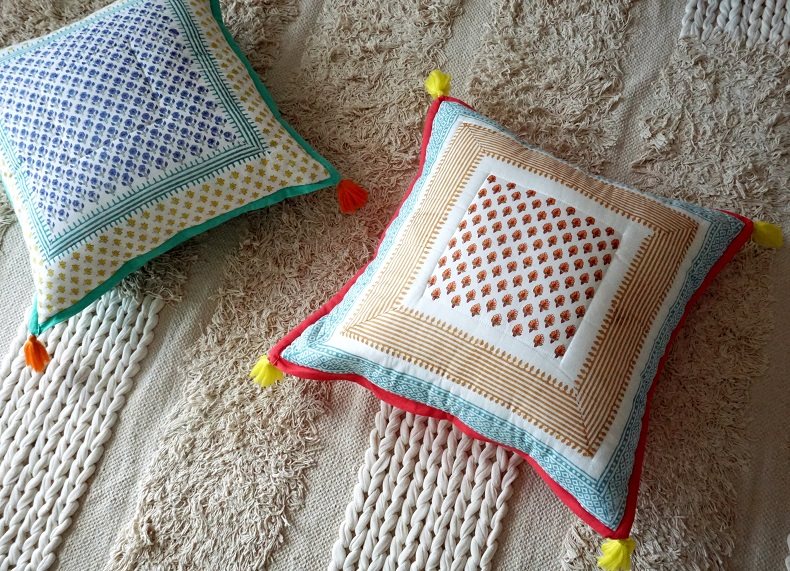 木版を使い、人の手によって一つ一つ丁寧にプリントされたブロックプリントのキルト。