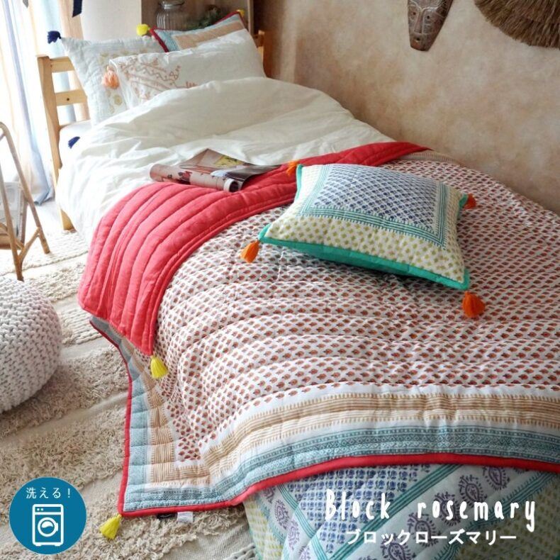 洗える!両面使えるキュートなブロックプリントキルト<blockrosemary – ブロックローズマリー ->:2サイズ