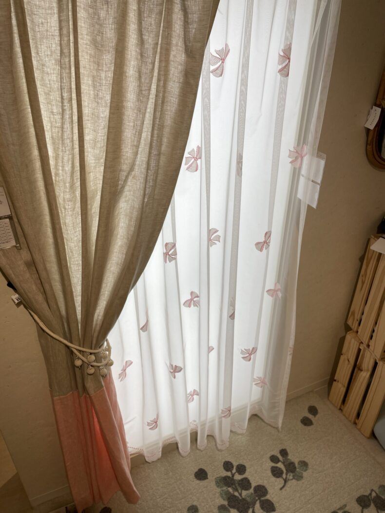 びっくりカーテンのショールームでは前回のブログでご紹介しました他所のお店で出来ないカーテンのコーディネートを体験できます。