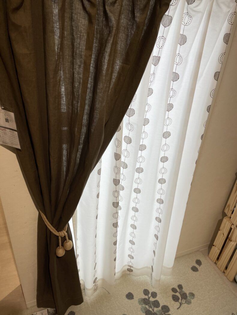 厚地カーテンにナチュラルな無地を持ってきているので、レースは柄が強くても多少押さえてくれます!