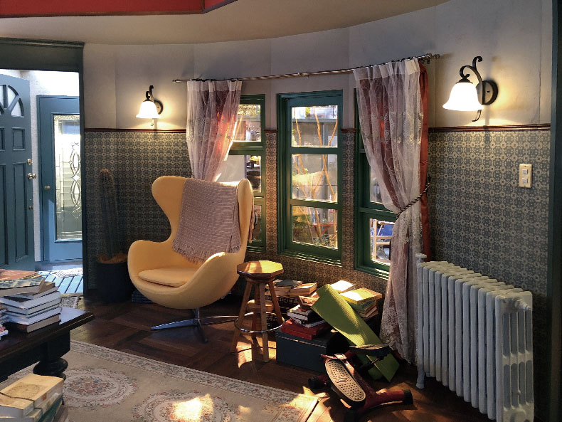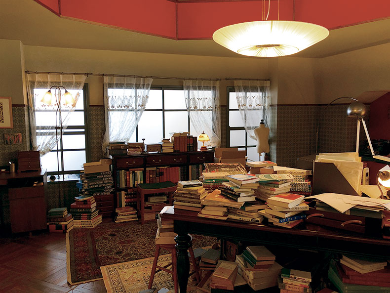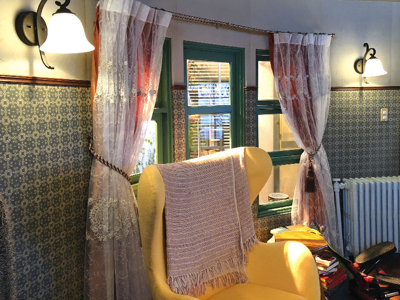 ▲売れっ子の脚本家の書斎ということで資料が山積みですね!▼クラシカルな壁紙や家具に合わせたシルバーのレールにミッドセンチュリーテイストのイエローのソファでアクセント。