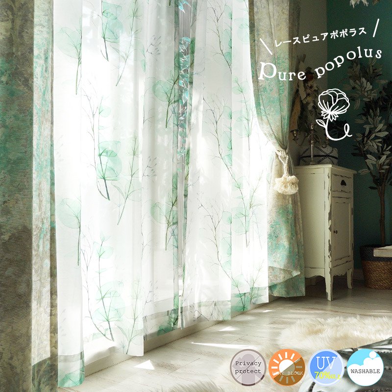 <レース ピュアポポラス>はグリーンの葉っぱが透けるようなデザインが印象的で
