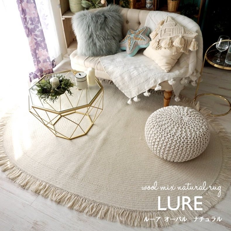 ウールミックスラグ!オールシーズンお使いいただけるウール素材使用< Lure – ルーア ナチュラル オーバル – >