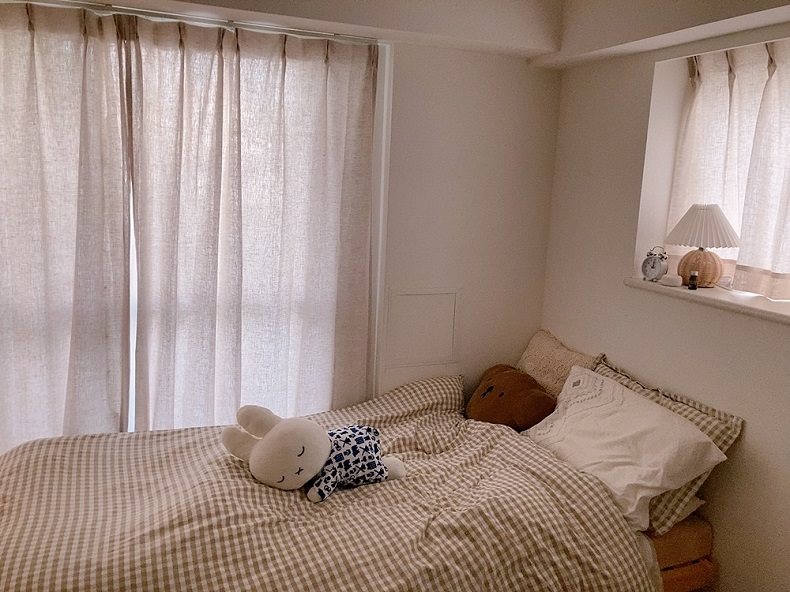 今回はベッドカバーやお部屋の小物たちがよりいいアクセントになって柔らかい雰囲気のお部屋になりました°˖✧◝(⁰▿⁰)◜✧˖°