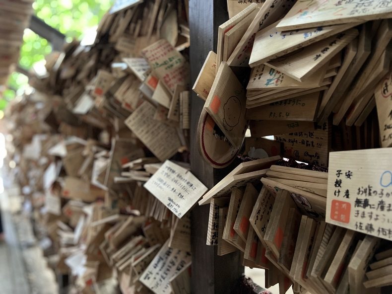 神社らしい絵馬の並びなども堪能し、友人の写真もたくさん撮れて大満足です。
