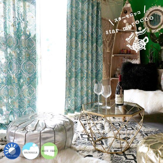 スターモロッコは鮮やかなグリーンに金箔がゴージャスな遮光カーテンです!