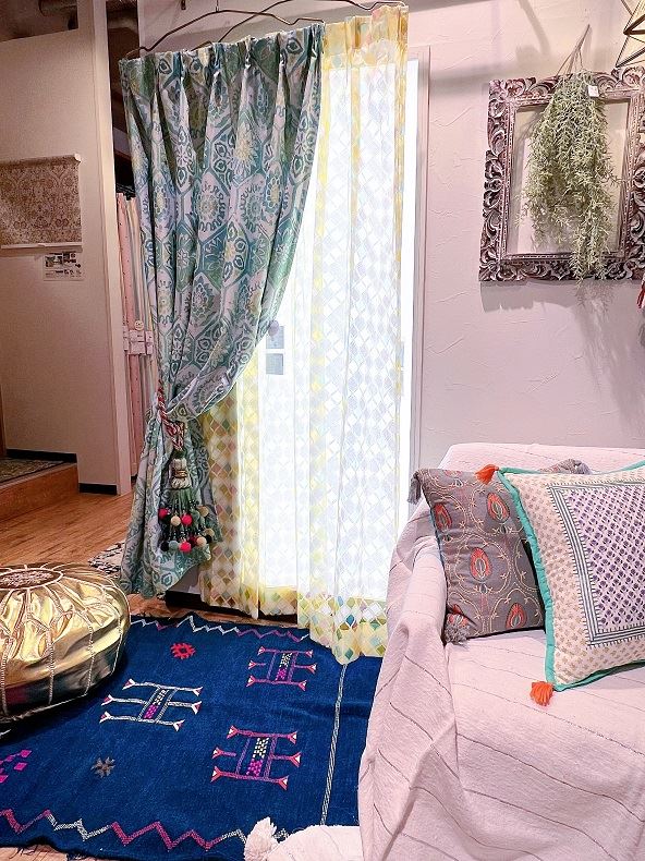 最後に私から、柄生地に選定したカーテンを使ったモロッカンコーディネートをご紹介いたします♪