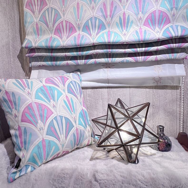 当店にて人気のカーテン生地から、クッションカバーの裏表の生地を