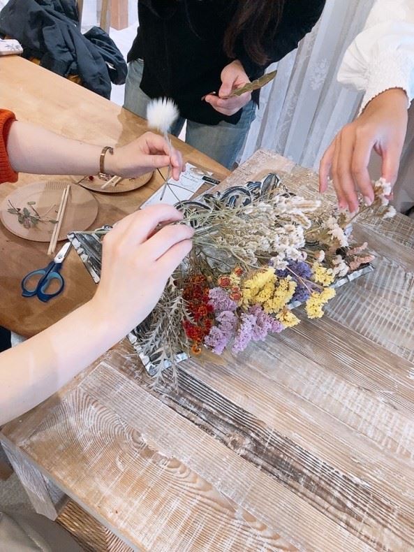 お客様同士でも会話を弾ませて頂き、お作り頂いたワックスバーやミニブーケの撮影も、とても和やかな雰囲気で、