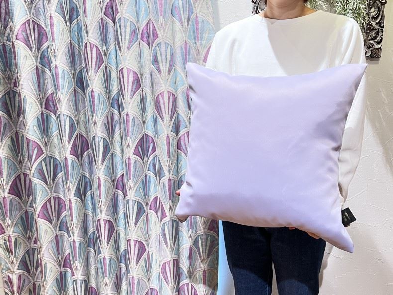 当店にて人気のカーテン生地から、クッションカバーの裏表の生地を