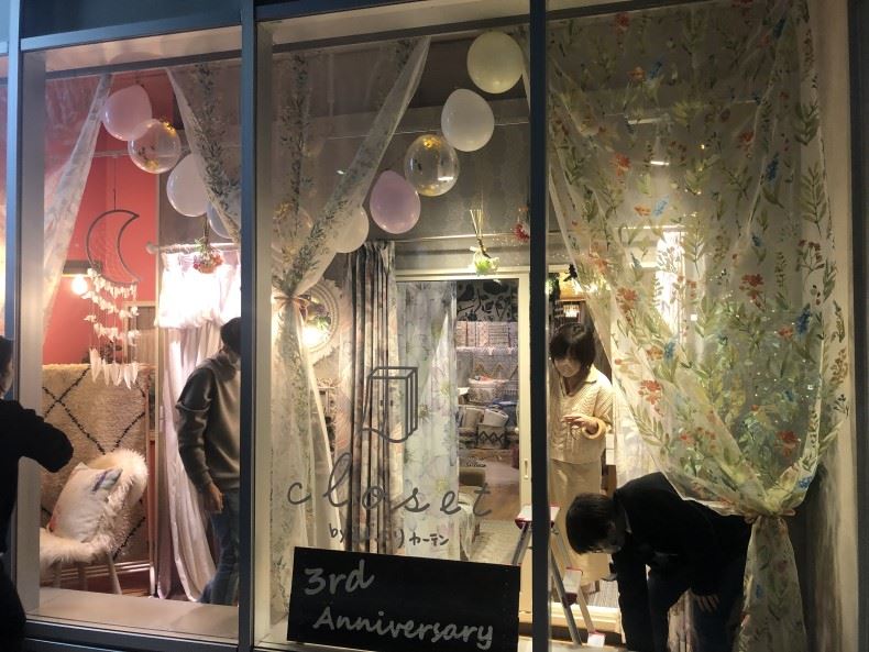 あーでもない、こーでもないと前日のショーウィンドウの飾り付けに夢中のスタッフ達です♪
