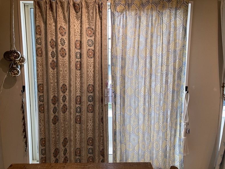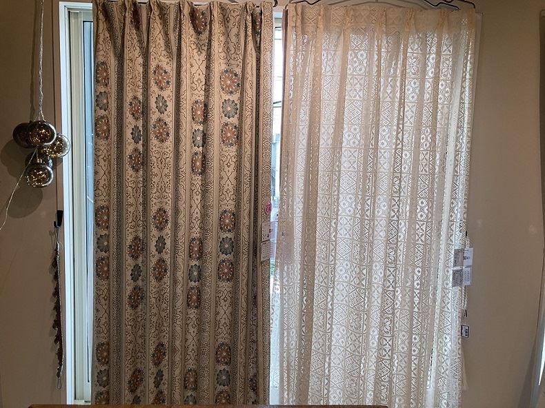今回私もカーテンを選ぶ際に実際に店頭のお窓に色々かけてお試ししたのですが、