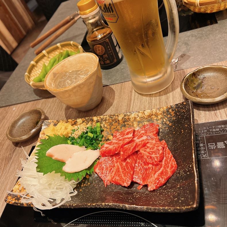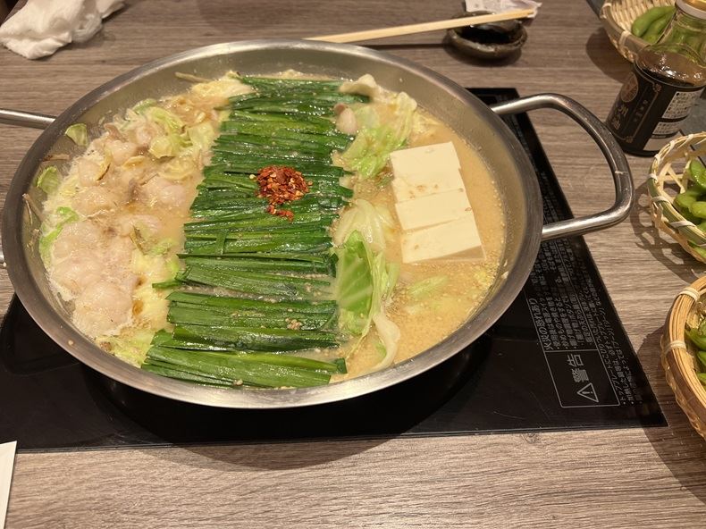 こちらも空港飯。どうしてもこれだけは食べたくて、帰る前にもつ鍋と馬刺しに舌鼓。お酒と相性抜群です。
