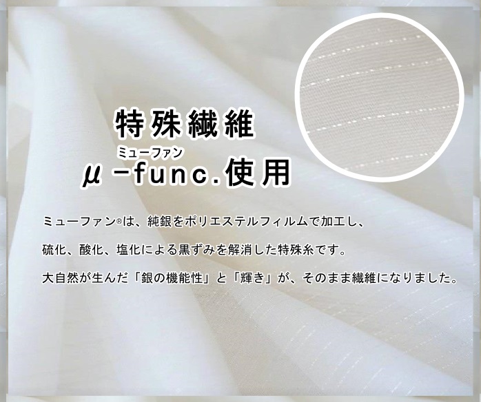 特殊繊維「μ-fanc.(ミューファン)」を使用して抗菌性を発揮する商品で、
