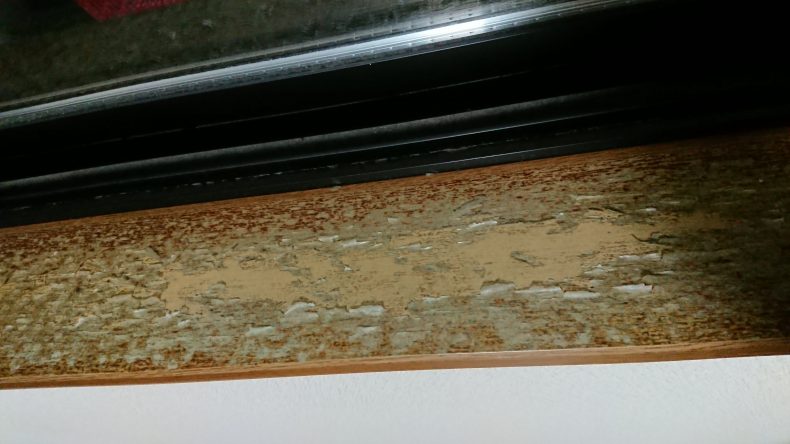 我が家の南向きの窓の窓枠ですが、日焼けによる化粧板がとても無惨な事に…