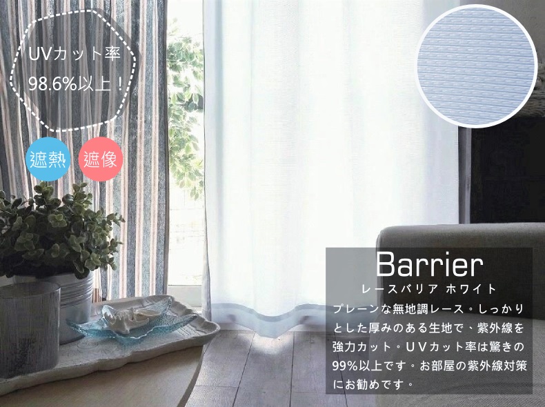 大人気の多機能レースカーテン UVカット率84% 遮像・防炎機能も有りますのでより安心♪