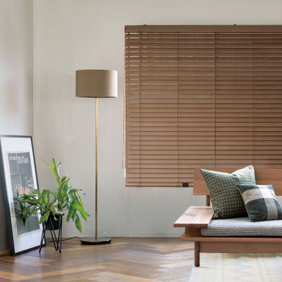 ウッドブラインドはスラットに木目が入ることでナチュラルな印象となり、アルミブラインドよりも柔らかな雰囲気になります。