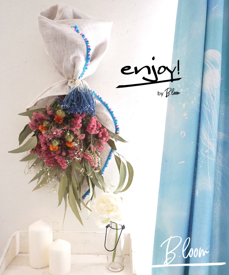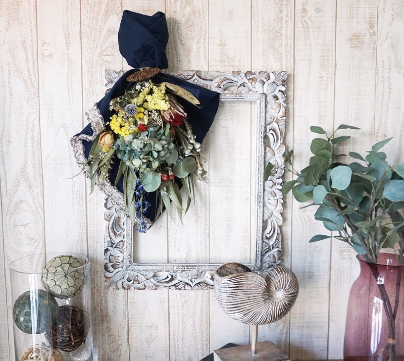 インテリアでも人気のモロッカンスタイルやマリンスタイルなスワッグやブーケなど、お部屋のテイストに合わせていただけるカラフルなドライフラワーを沢山ご用意しております。