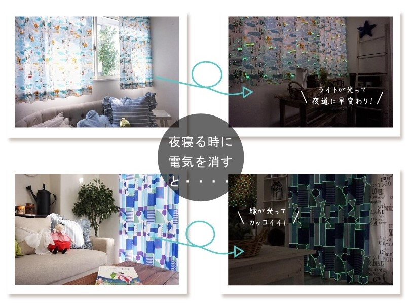 「海のいきものずかん」「1にちのことば」といった色々なデザインが描かれたカーテンなら