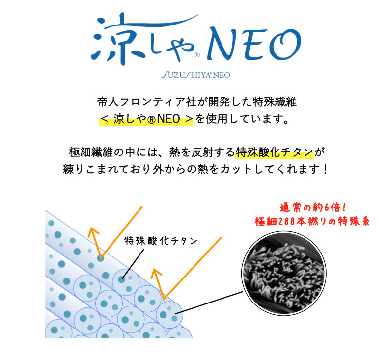 かつ繊維の中に熱を反射する特殊酸化チタンを練り込むことでさらに外からの熱をカットします。