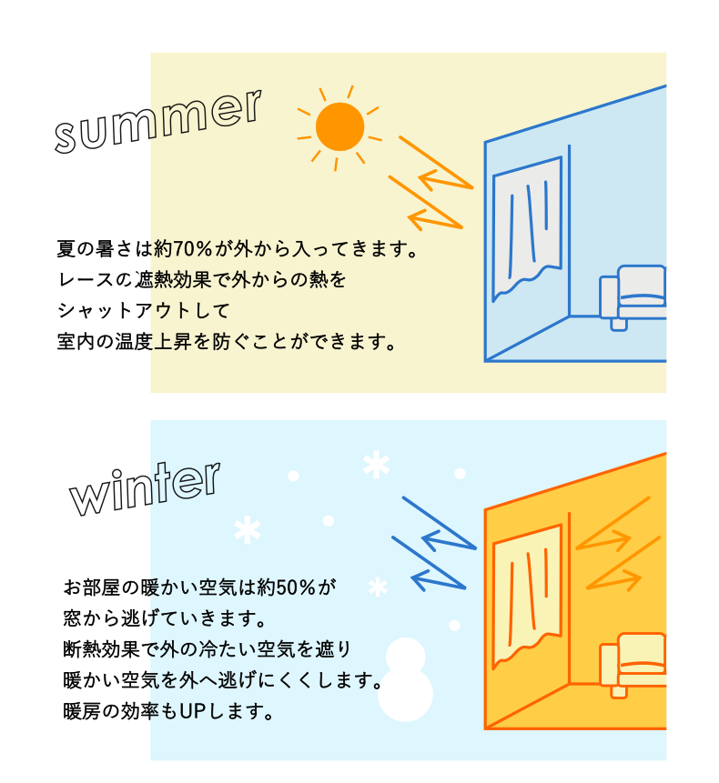 レースカーテンでも熱を遮る遮熱効果が高いものがたくさんあります。