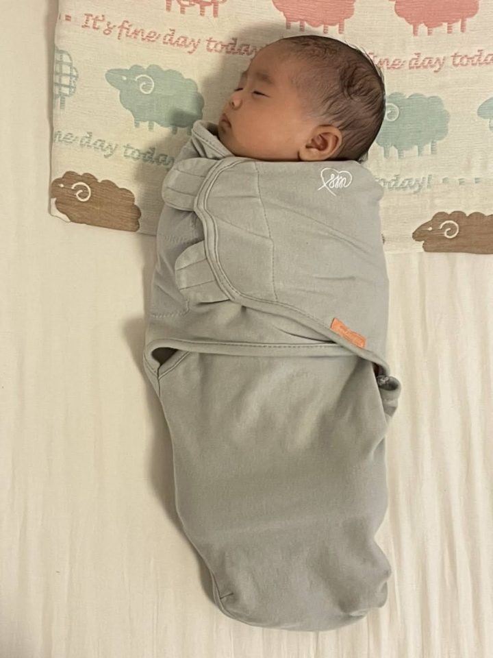 でもなかなか寝てくれない日々が続いたので、試しにこのスワドルで巻いてみたところ、すや~と寝てくれるようになりました!