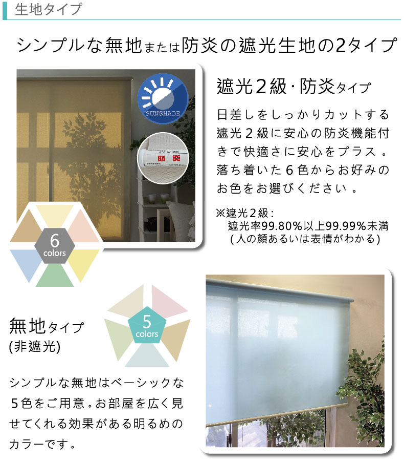 シンプルな無地と、防炎の遮光生地がございます!