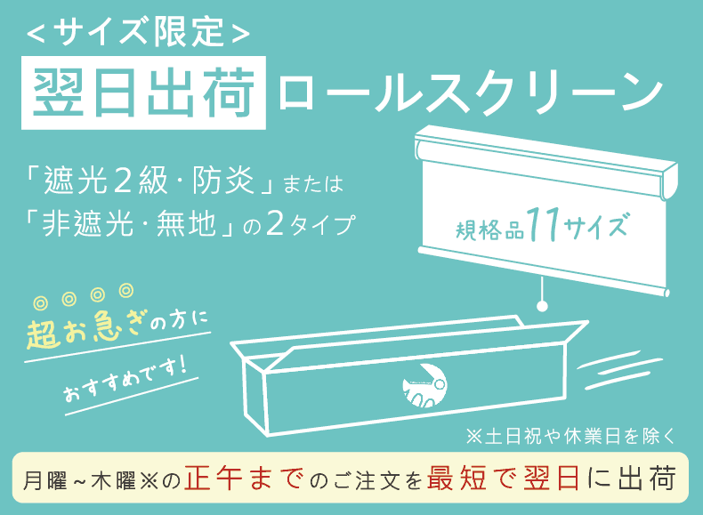 【翌日出荷ロールスクリーン】は、午前10時までのご注文完了分が対象となります。
