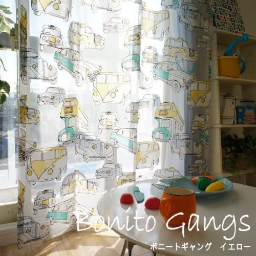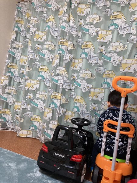 お引越し先のカーテンはかわいいかわいい車のレースカーテンに決めました!!