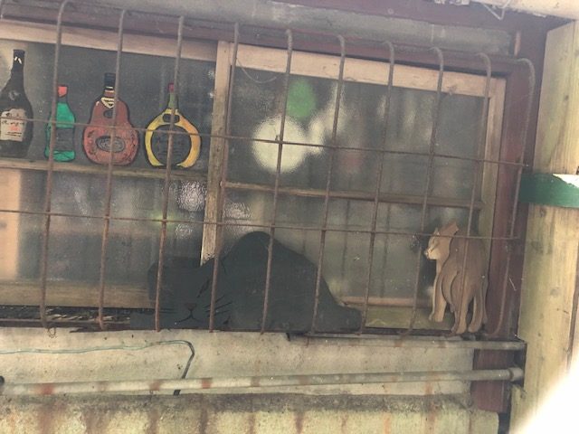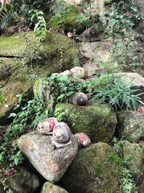 神社の横のほそーい、本当に細い坂道を登って行くと、本物の猫ちゃんや猫ちゃんモチーフの可愛いオブジェなどがいたるところに!