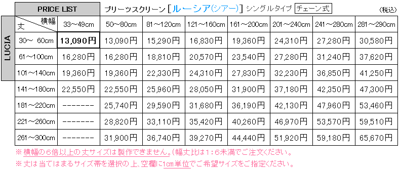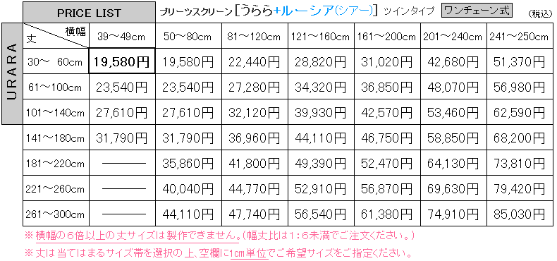 また、レースタイプのプリーツスクリーンご希望の方にも、うららの生地とセットになっている、ルーシア単体でのプリーツスクリーンも作成可能でございます。