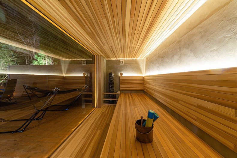 こちらのお宿の大きな魅力が、とってもおしゃれなプライベートサウナです!