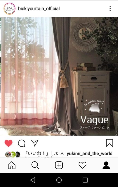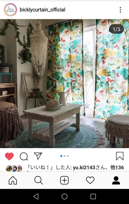 カーテン生地のアップだけ見てもイメージしにくいですよね。そういう時にはホームページだけではなくインスタグラムの画像も参考にしていただきたいと思います♪