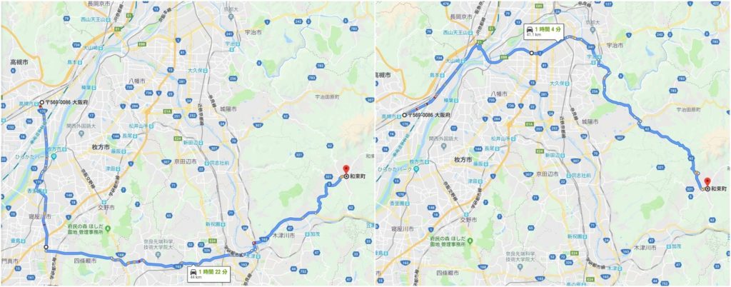 なお、和束町への行き方はびっくりカーテンショールームからですと