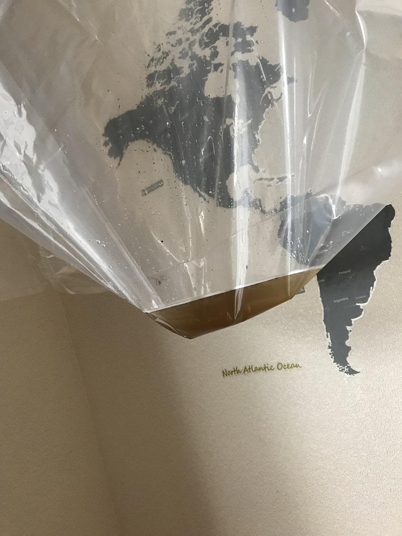 洗浄水をかけると養生のビニール袋にはご覧の様な汚れが…