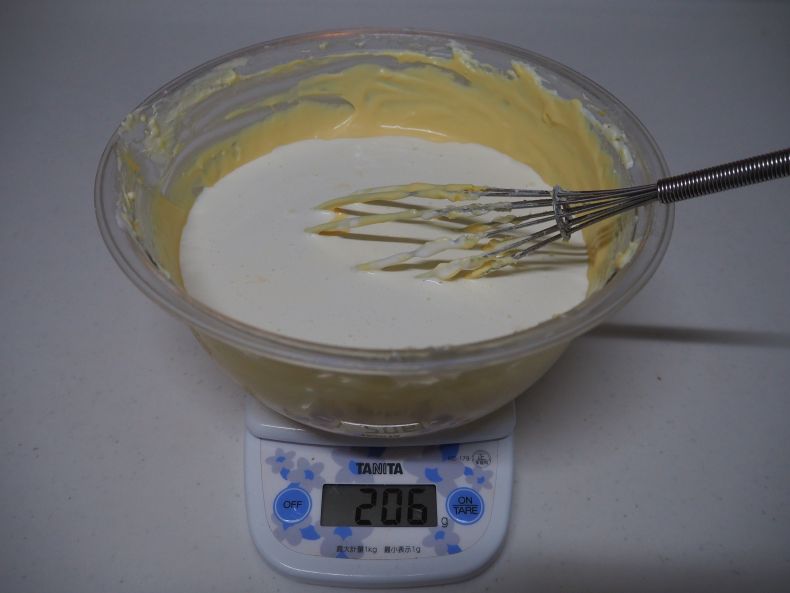 それをクッキングシートを入れた型にうまい事注ぎ込んで、