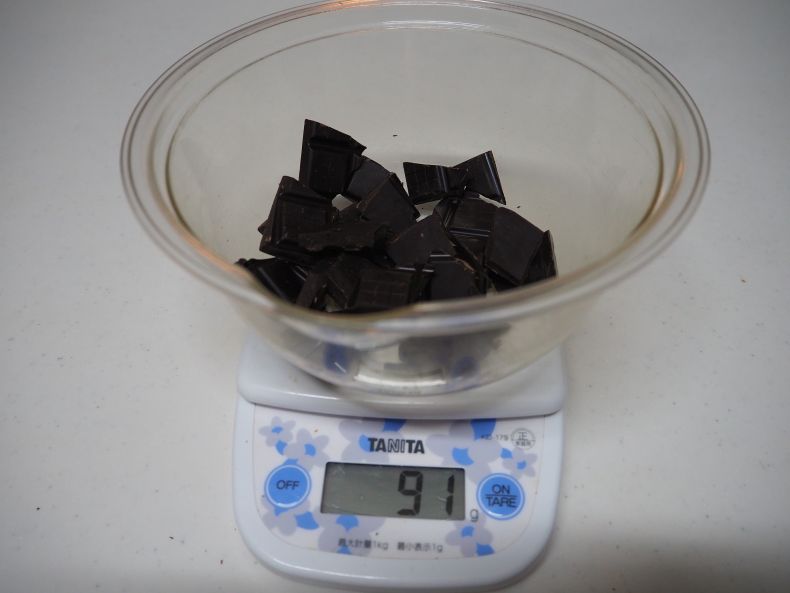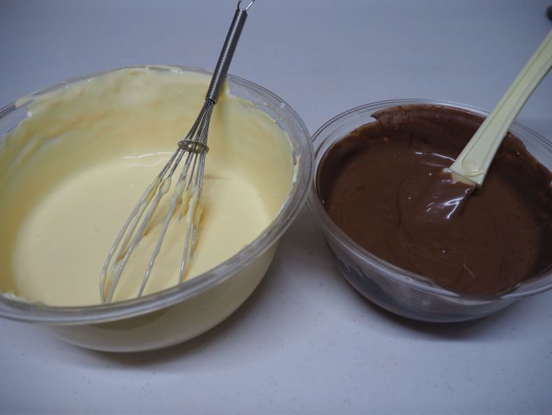 溶け切ったチョコを半分に分けたタネの片方に混ぜ込みます。