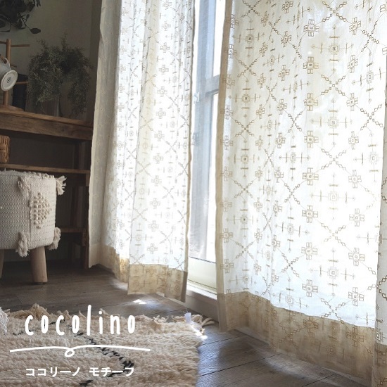 【pom pom home -ポムポムホーム-】■フラットスタイル・綿(コットン)100%の総刺繍レースカーテン<cocolino-ココリーノ>