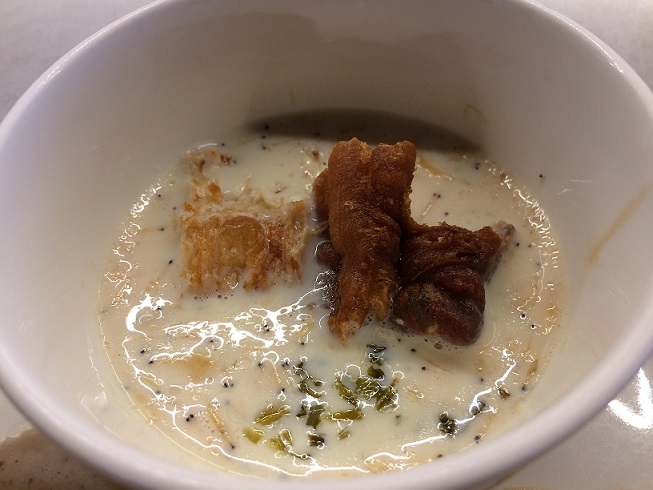 とろみのある鰹出汁で煮込んだにゅう麺のような料理です。