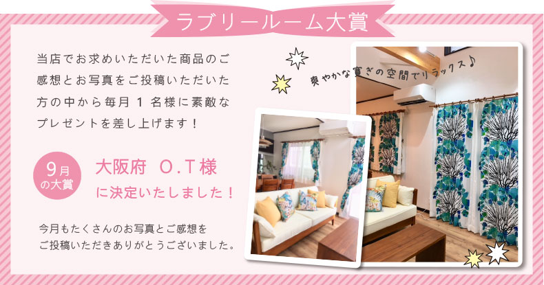 びっくりカーテンでは商品をお求めいただきましたお客様を対象にお部屋のお写真とご感想を募集いたしております。