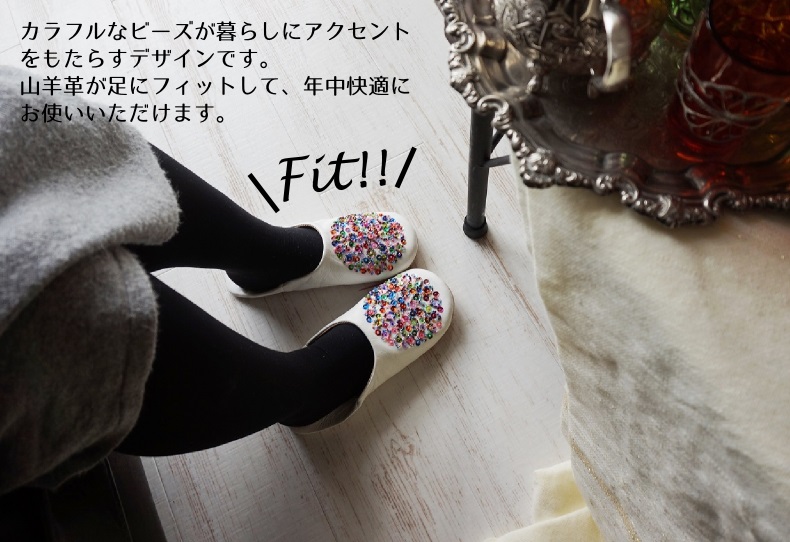 これからの寒くなる時期、外から帰って来た時にビーズバブーシュが玄関にあると、きっと癒される事でしょう💛