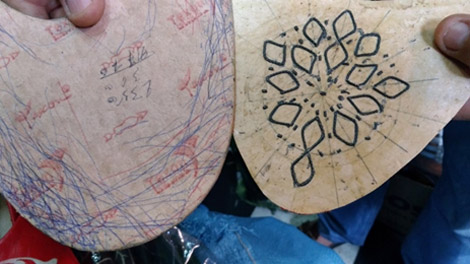 ビーズが縫い付けられるまでの工程を、この型紙を持っていた革の加工職人さんに教えてもらえたので皆さんにもご紹介しますね。