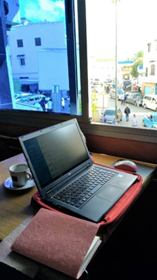 ここは、仕事がないヒマなモロッコおじさんが、時間つぶしの為に世間話をしにくるカフェではなく、自分のパソコンを持参して仕事をするモロッコ人が利用するようなカフェなのです。 そして時々、モロッコの他のカフェでは珍しい女性客も来ます。(甘いケーキが食べられるからでしょう♡)