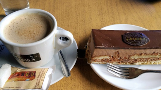 カフェオレは7ディラハム(約100円)。カフェオレの泡を見ると、暖かい気分になりホッとするのです。