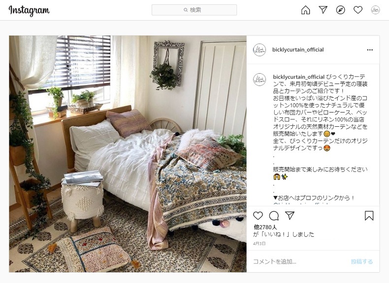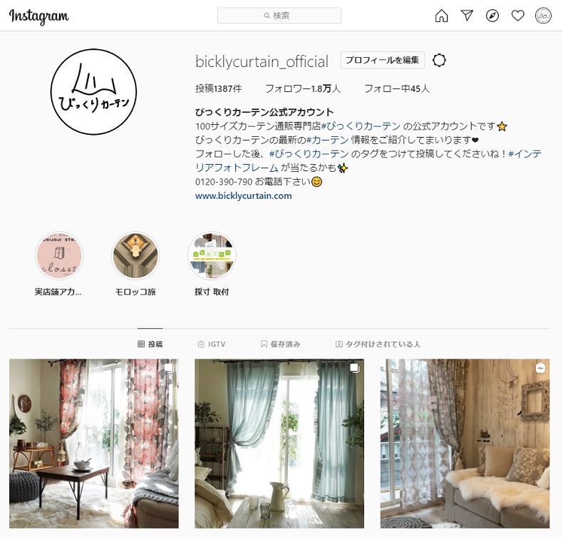 さて、本日のテーマはびっくりカーテンが最近特に力を注いでいるインスタグラム(INSTAGRAM)のお話です。