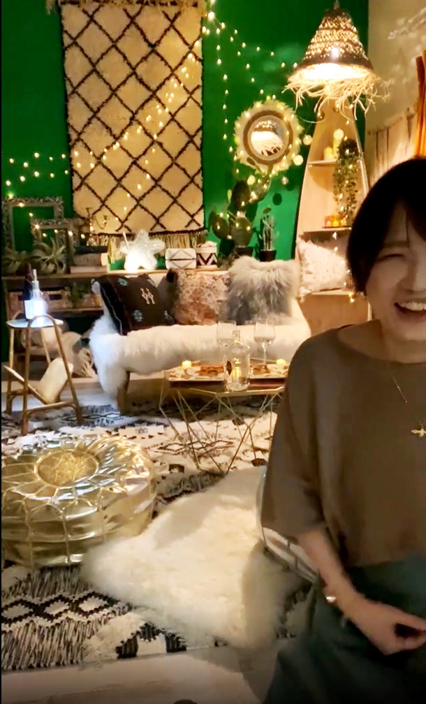 こちらは、びっくりカーテンのスタッフがクリスマスの聖夜に向けた空間作りのご提案を新商品の情報をふんだんに交えながら配信したインスタライブの一コマです。