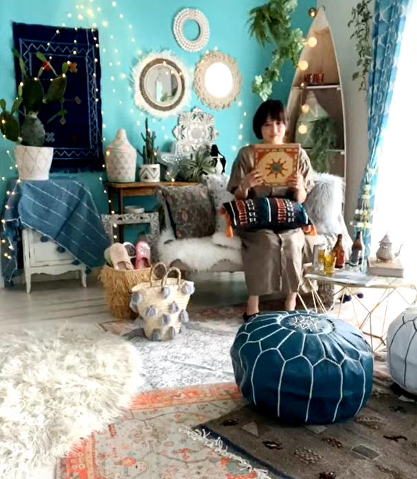 シャビーシックな空間から、同じ家具という条件でBOHOスタイルに模様替えする様子をリアルタイムでお届け致しました。